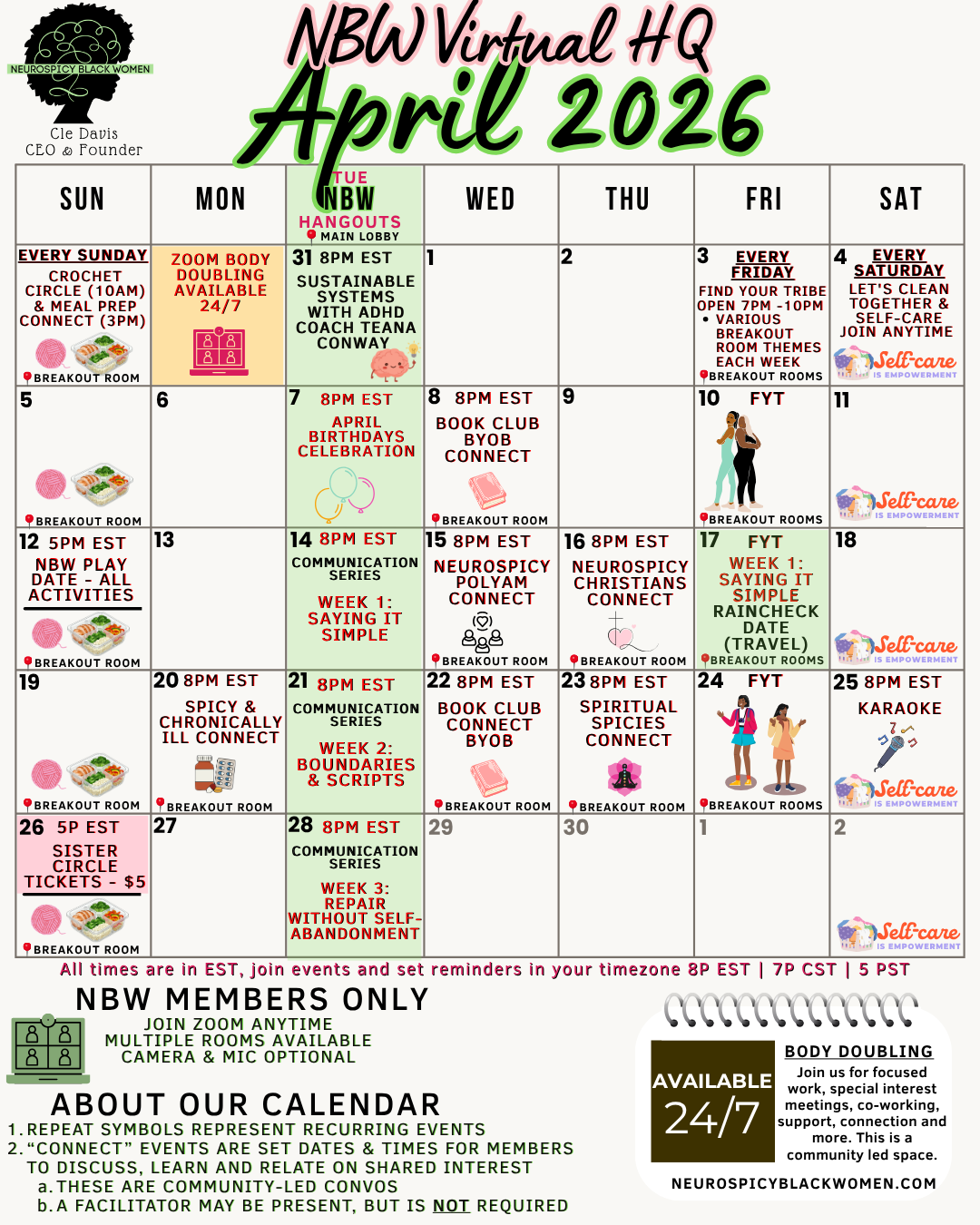 “I finally found a space where I don't have to explain myself. Everyone just gets it. The body doubling sessions have changed my life. I'm actually getting things done!”
